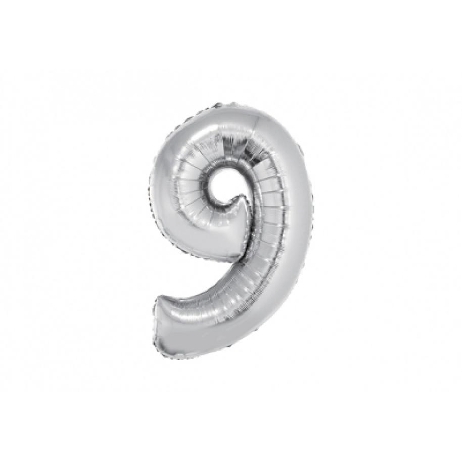 GLOBO NUMERO 32" PLATA 9 Set X 5u